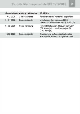 Ev.-luth. Kirchengemeinde BERGKIRCHEN Ev.-luth. Kirchengemeinde BERGKIRCHEN 17